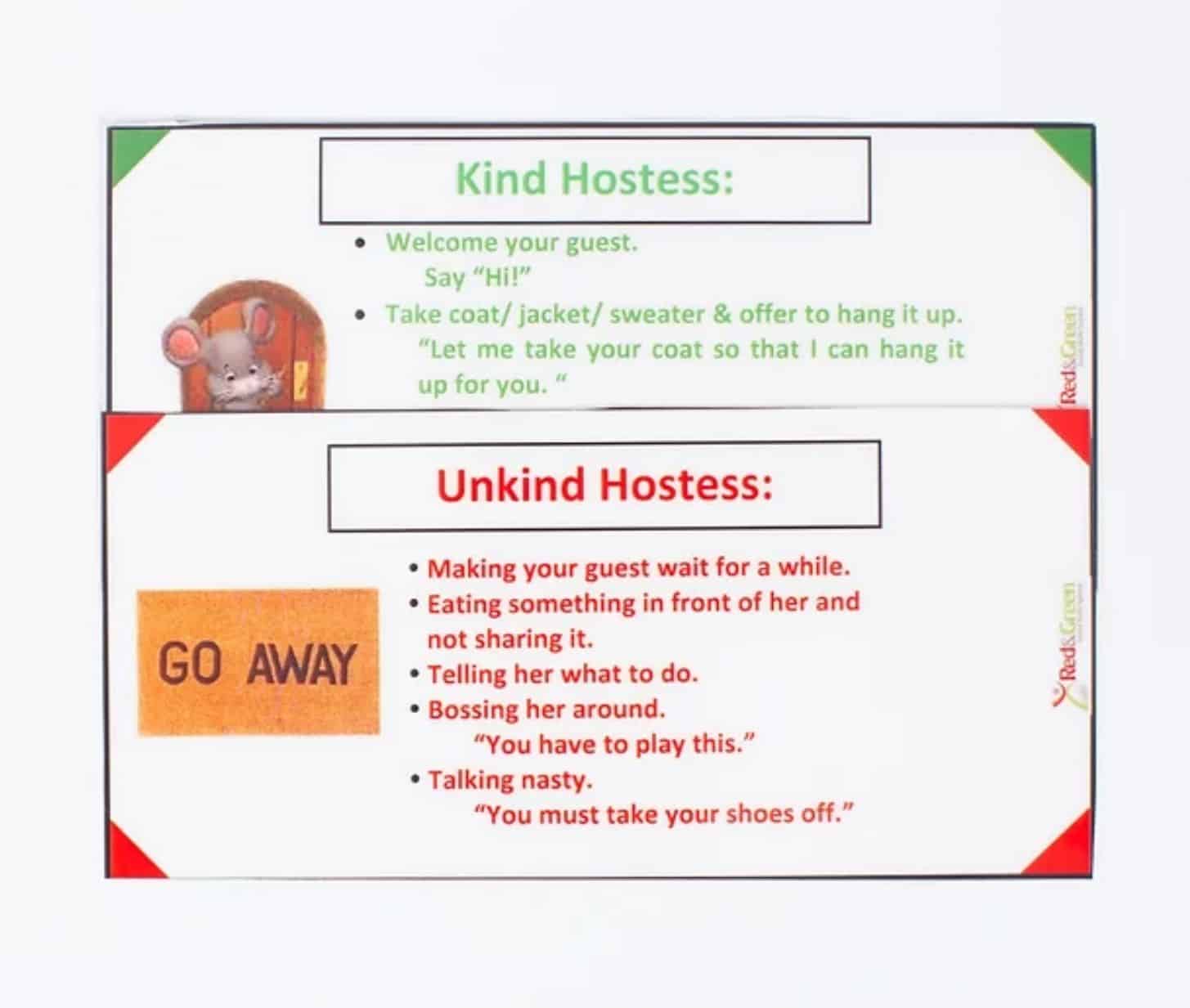 • Unkind Hostess Behavior Poster - Contrasting examples of behaviors to avoid when hosting