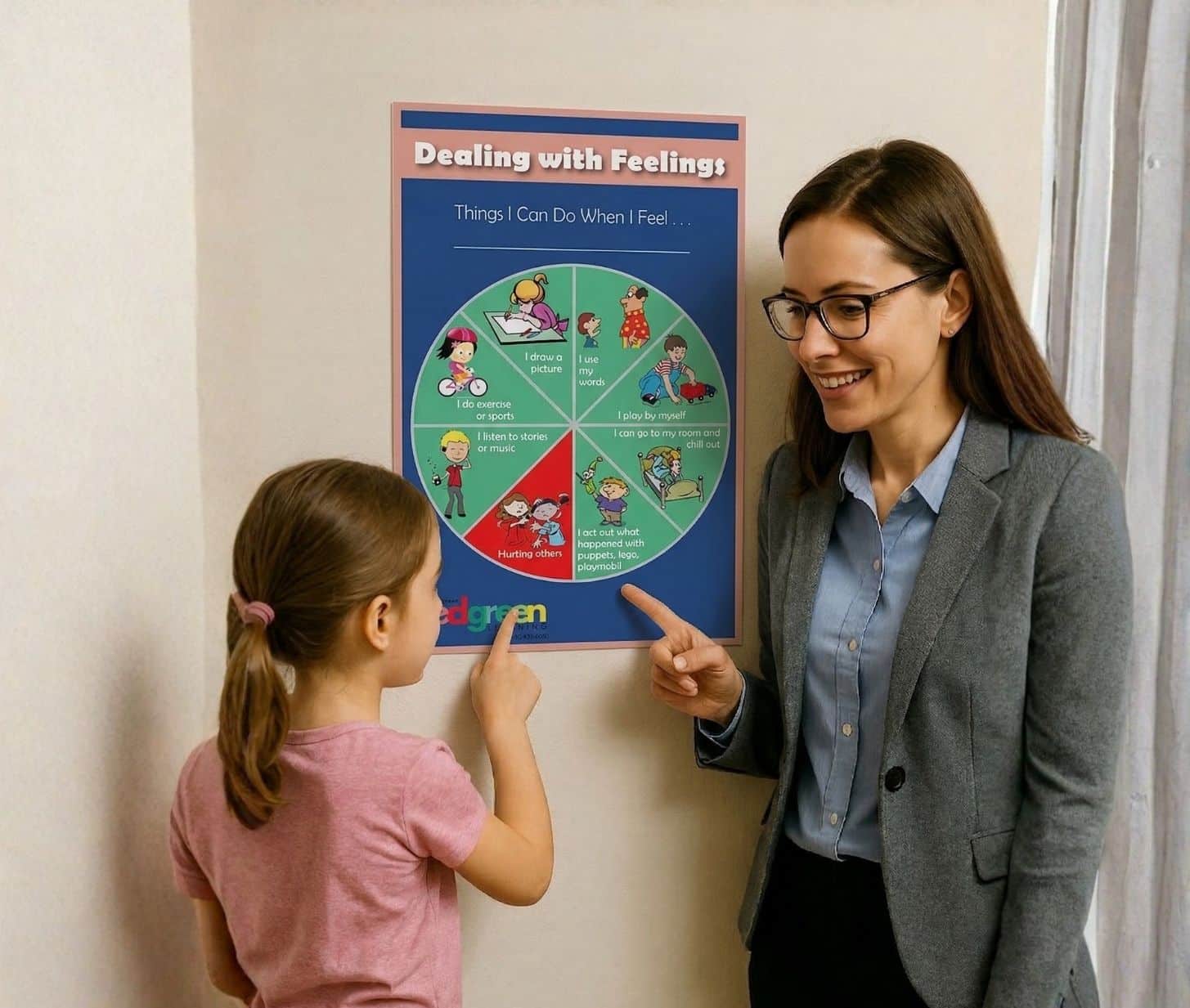 Redirect emotional meltdowns with research-backed coping strategies. Visual emotional regulation tool by Red-Green Behavior therapy featuring positive coping skills for children ages 5-teen. Perfect therapy material for classrooms, counseling offices, and calming corners.